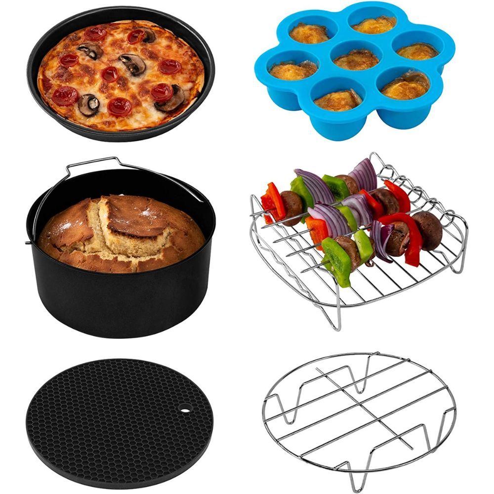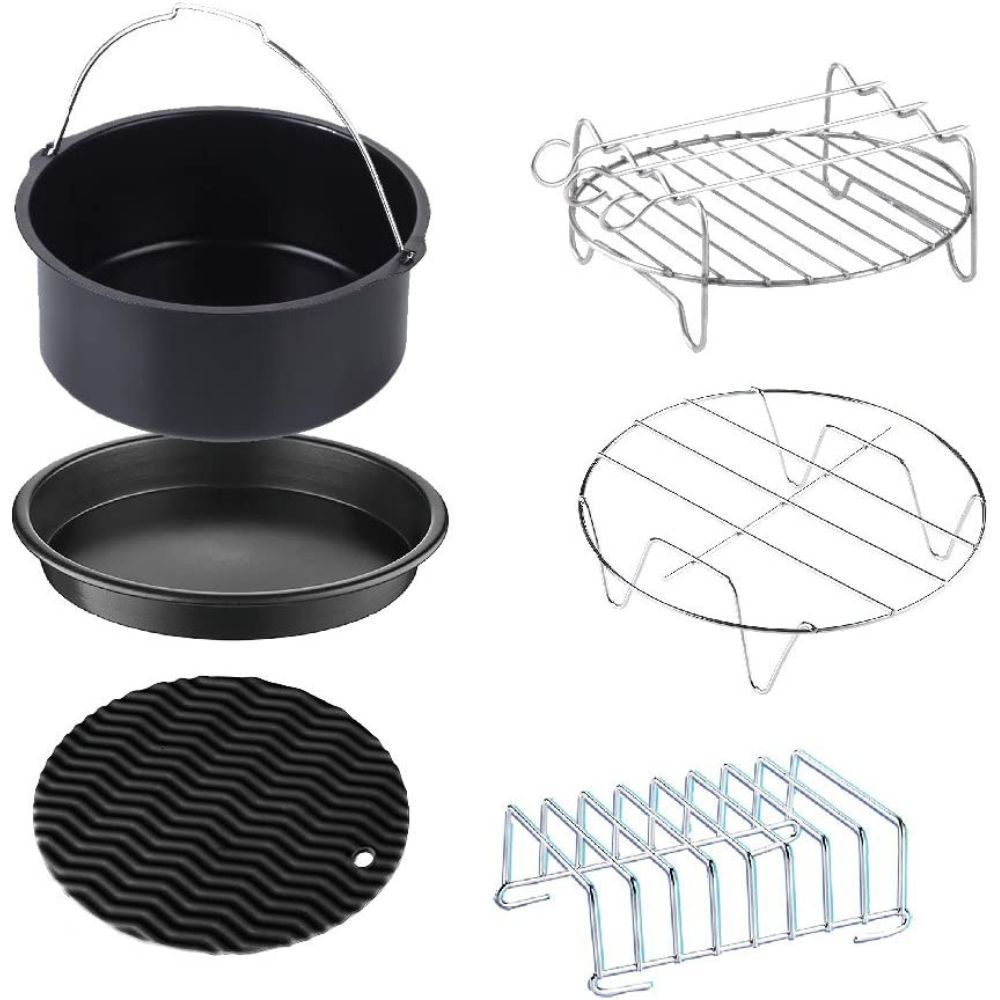 Are you ready to take your air fryer game to the next level? With 6 air fryer accessories, the possibilities are endless! Say goodbye to boring chicken nuggets, chicken wings and vegetables and hello to delicious pizza, kebabs, and even cake.