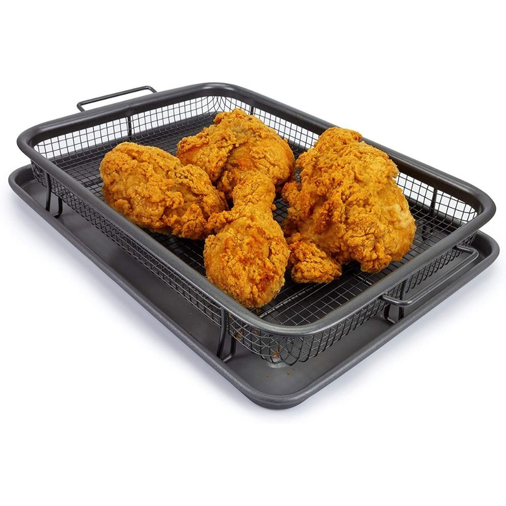 Air Fry Crisper Basket, Tray & Grease Catcher, Even Cooking, Non-Stick, Healthy Cooking