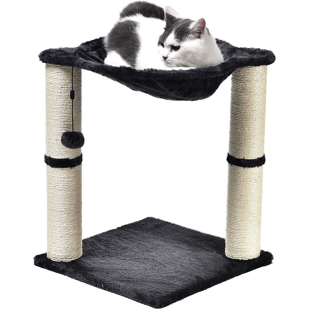 This cat tower is designed specifically for indoor cats, providing them with endless opportunities for climbing, scratching and napping. Featuring a plush, grey hammock between two sturdy scratching posts wrapped in natural jute fiber, your kitty will have no trouble sharpening her claws and keeping her nails healthy.