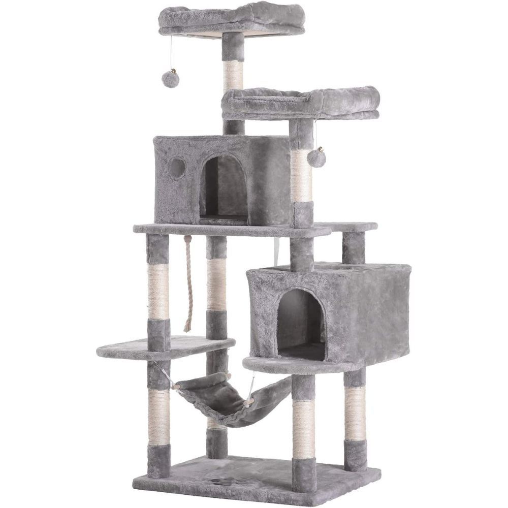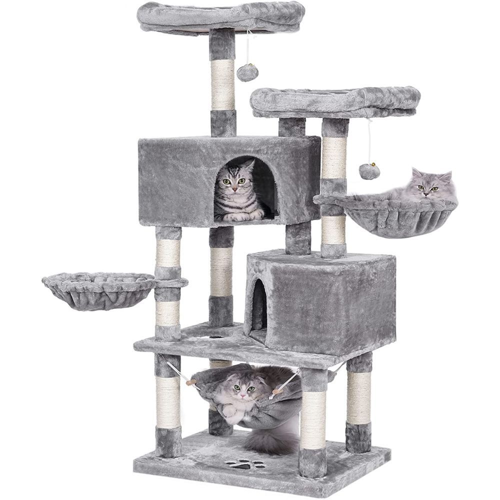 with Sisal-Covered Scratching Posts, 2 Bigger Plush Condos, Perch Hammock for Kittens, Cats and Pets Light Gray