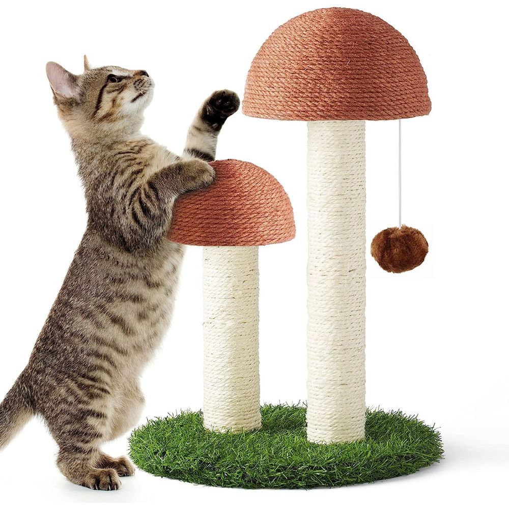 Welcome to the world of natural sisal cat scratchers, where you can keep your furry friends happy and your furniture intact! Their scratcher is not only safe and durable, but it also has a cute mushroom shape that your cat will love.