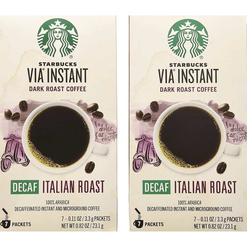 If you're looking for a caffeine-free morning boost, grab a package of Starbucks Via Ready Brew Decaf Instant Italian Roast Dark Coffee!