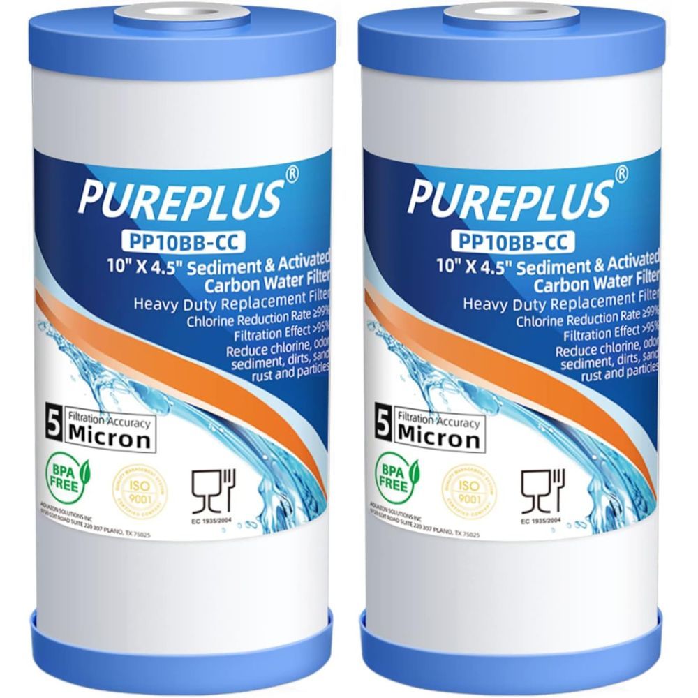 Introducing the PUREPLUS 5 Micron Whole House Sediment and Carbon Water Filter – designed for homeowners who value convenience and economy. Whether you're looking to save time on installation or money on your monthly water bills, this high-quality filter has everything you need!