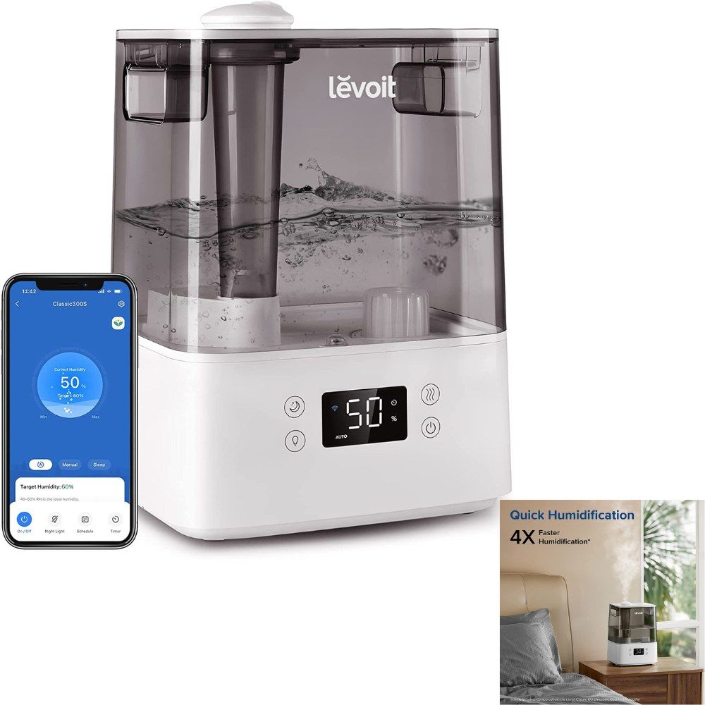 The LEVOIT Humidifier is super quiet. It features a sleep mode that allows you to enjoy a restful night of sleep without hearing it in the background, so you can wake up feeling refreshed and ready for whatever the day brings. Plus, its adjustable mist levels let you raise humidity levels to exactly what you need.