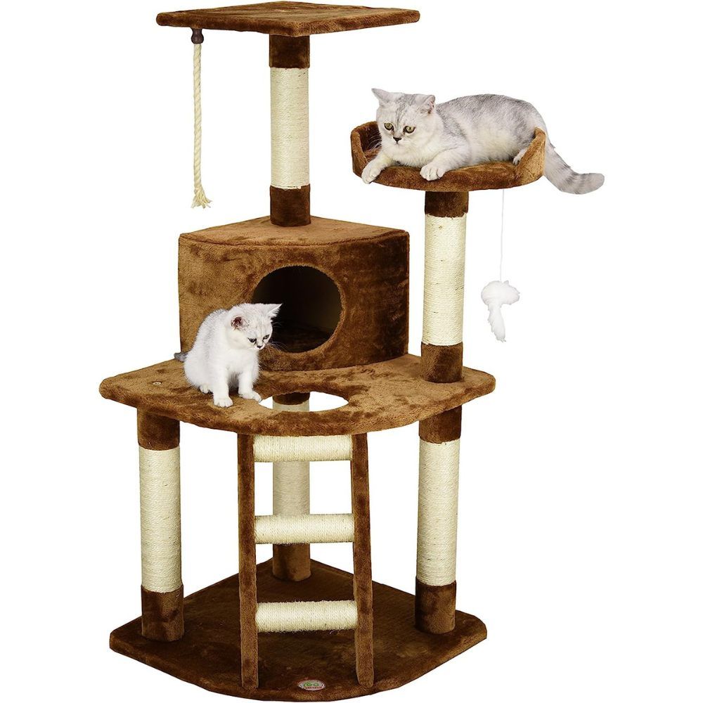 Cats prefer cat trees that offer them plenty of height, scratching posts, and hiding spots. The Go Pet Club 51" FULL Sisal Covered Scratching Posts Corner Cat Tree is a great choice for cats who want it all!