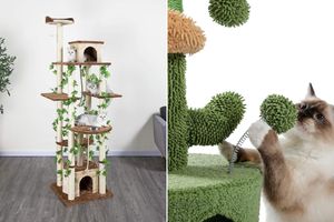 This tree features two condos and a hammock, as well as sisal, rope-covered scratching posts to satisfy your cat's need to scratch and climb. Plus, it's easy to assemble and made from durable materials. Your cats will love this tree!